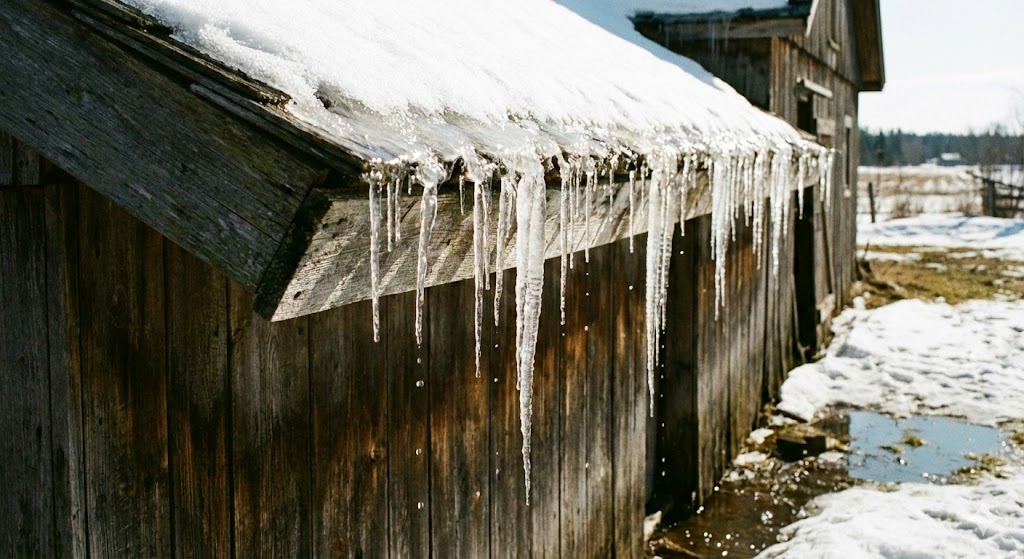 氷ができて「氷柱(つらら)」や「氷だまり」が発生することも。
